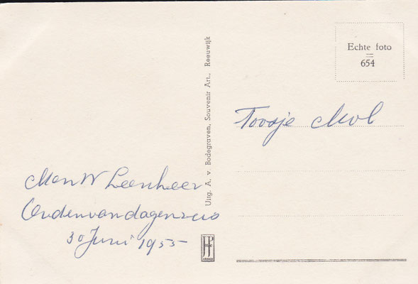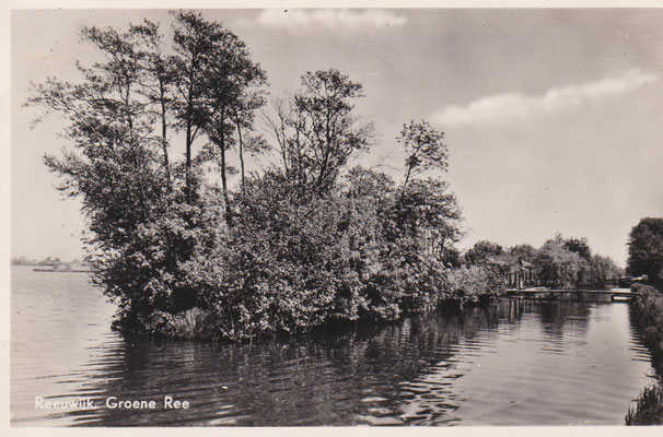 Item: Gebouwen, Bezienswaardigheden, Omgeving, Sub Item: Groene Ree, Plaats: Reeuwijk, Jaar:1955 Verhaallijn: Onze oud tantes gaven deze kaart aan de familie, Kaart: Reeuwijk-1