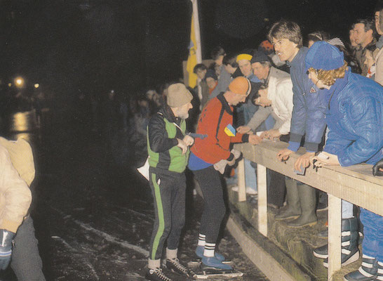 Schaatsen was populair en wij hielden de tijden nij en zette de tijden op de pagina die uit de krant kwam. Er kwamen doppinda's op tafel en een glaasje Exota, wat een schaatsfeest hadden wij